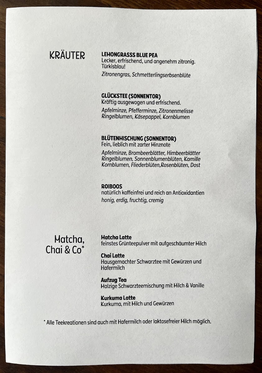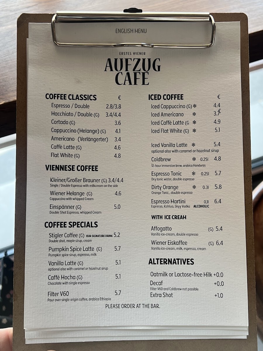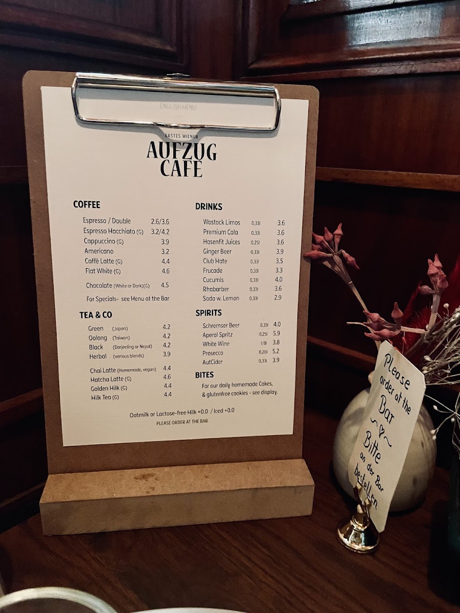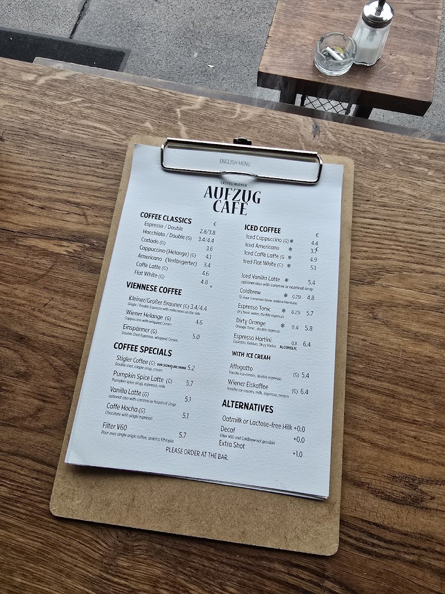 Aufzug Café offers a thoughtfully simple menu centered around comforting drinks and light café fare, ideal for a relaxed pause in your day. The selection focuses on well-crafted coffee specialties like cappuccinos, americanos, and café lattes, alongside refreshing choices such as iced matcha and warming options like chai or kurkuma lattes.